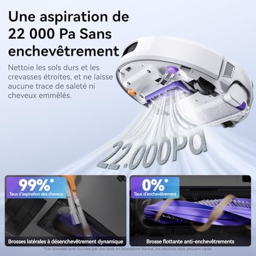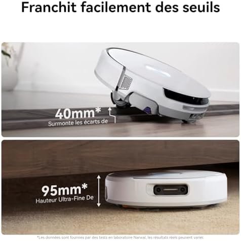 À propos de cet article Station Automatique d’Alimentation et de Drainage: Les utilisateurs n’ont qu’à effectuer le branchement manuel initial du tuyau d’eau à la station. Ensuite, l’alimentation en eau et le drainage s’effectuent entièrement automatiquement avec dosage intelligent de liquide de nettoyage. La station réduit au minimum l’intervention manuelle pour une expérience de nettoyage véritablement automatisée. Système de lavage FlowWash: Le robot aspirateur Narwal Flow intègre un système révolutionnaire de auto-nettoyage FlowWash en temps réel, repoussant les limites des méthodes traditionnelles de lavage. Équipé de deux réservoirs d’eau, de 16 buses pulvérisant uniformément la serpillière et d’une raclette intégrée pour récupérer les eaux usées, il nettoie en temps réel le rouleau de lavage rotatif à haute vitesse pendant l’opération. Combiné à une eau chaude à 45°C et une pression vers le bas de 12N, chaque centimètre du sol entre en contact avec une serpillière propre, éliminant efficacement les taches tenaces. Système d’évitement d’obstacles à double intelligence: Grâce à sa double caméra et sa puce IA 10 TOPS, le Narwal Flow identifie intelligemment plus de 300 objets domestiques. Évitant avec précision meubles et jouets, il navigue librement dans les espaces bas et étroits. Optimisé pour éviter l’enroulement autour des câbles, il prévient tout blocage. Sa capacité de franchissement d’obstacles est améliorée pour traverser facilement seuils et marches. Technologie Narwal CarpetFocus: Avec une puissance d’aspiration de 22 000 Pa, le Narwal Flow nettoie en profondeur les fibres de tapis, éliminant saletés incrustées et poils d’animaux sans nécessiter de nettoyage manuel complémentaire. Grâce à une augmentation automatique de 182% de la puissance sur tapis, son efficacité d’aspiration double celle des produits standard. La technologie de relèvement automatique de la serpillière prévient tout risque d’humidification des tapis. Aspiration ultra-puissante de 22 000 Pa: Le système « Ouragan » aspire poussières fines, miettes, croquettes et débris volumineux. Le système Anti-Enroulement DualFlow empêche tout blocage par les cheveux. Sa brosse latérale réversible nettoie avec précision les recoins, tandis que le système EdgeReach prolonge la serpillière jusqu’à 5 mm des murs, éliminant les saletés cachées dans les plinthes et angles pour un nettoyage intégral. Design Ultra-Fin & Franchissement Automatique: Passe sous les lits et meubles bas. Narwal Flow se soulève pour franchir des obstacles de 40 mm (les seuils de balcon, les séparations de pièces) sans intervention. Avec seulement 95 mm de hauteur, Narwal Flow se glisse dans les espaces bas et étroits pour nettoyer les espaces que vous ne pouvez pas atteindre. Station tout-en-un: Multifonctionnelle et sans entretien, elle intègre un système silencieux de collecte de poussière, un lavage dynamique à eau chaude (45-80°C) et un séchage par air chaud, libérant complètement l’utilisateur. Controles intelligents: Contrôle mains-libres via Alexa, Google Assistant, Siri ou la commande vocale « Hey Nawa ». L’application Narwal permet de planifier le nettoyage, définir des zones interdites, créer des cartes multiples, catégoriser les pièces et ajuster les paramètres pour une intégration fluide dans l’écosystème smart home.