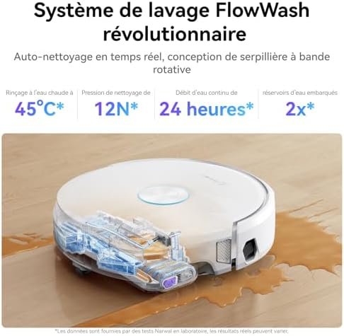 Narwal Flow Aspirateur Robot, Station Tout-en-Un Compacte, Gestion Automatique de l’eau, 22.000 Pa