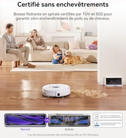J’ai acheté une premiere fois cet aspirateur en novembre dernier. J’ai eu le mois dernier un soucis. Je l’ai donc renvoyé. J’ai essayé un autre robot et finalement je suis revenu au Narwal. Dans sa gamme, le Narwal reste de loin le meilleur. Son seul défaut est parfois ses petits bugs. Mais généralement il est très agréable à utiliser. L’application est vraiment bien faite. La cartographie se fait très rapidement et correctement. La détection des obstacles est excellente à conditions de nettoyer régulièrement les capteurs. L’aspiration est excellente également et encore plus quand on choisi le mode méticuleux ; je note l’excellente aspiration des tapis ! J’adore l’option nettoyage Freo intelligent qui détecte le niveau de saleté de chaque pièce et adapte ses paramètres de nettoyage . J’adore pouvoir suivre la chronologie des sessions de nettoyage ainsi que le niveau en temps réel d’acheminement de la session. Le niveau de serpillage n’est pas exceptionnel mais suffisant pour un entretien régulier des sols. Le réservoir me permet de faire tout mon appart de 55 m2 deux fois.En résumé, à part les quelques petit bugs qui se produisent parfois, cet aspirateur reste de loin le meilleur du marché dans sa gamme!