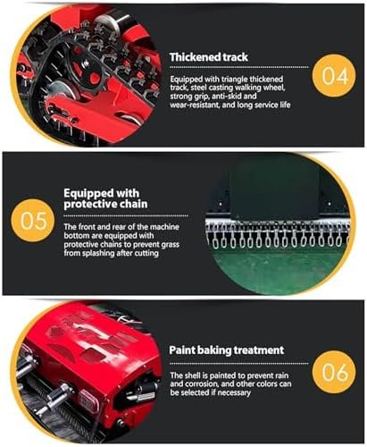 5. Sécurité : utilisez la tondeuse jusqu'à 200 mètres de distance en utilisant la télécommande pour plus de sécurité. La tige de connexion hydraulique améliorée assure la stabilité, même sur des pentes allant jusqu'à 45 degrés, ce qui la rend sûre pour une utilisation sur les pentes raides. |